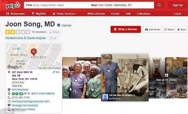 莱文在Yelp上给亚裔医生宋俊留下1星差评(Yelp)