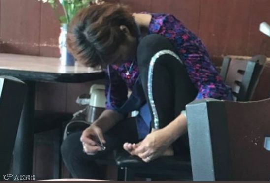 还有媒体曝出中国大妈在用餐区剪脚趾甲的消息。据报道,去年7月初,在美国北卡州温斯顿-赛伦的一家中餐馆,一名坐在用餐区的妇女开始剪脚趾甲,被前来用餐的美国人艾施莉.鲍查(Ashley Beauchamp)及家人撞见,认为这种行为不卫生的鲍查向餐馆一名员工提出,出乎意料的是员工竟然告诉她,该妇女经常在餐馆剪脚指甲,鲍查就把她拍下来。
