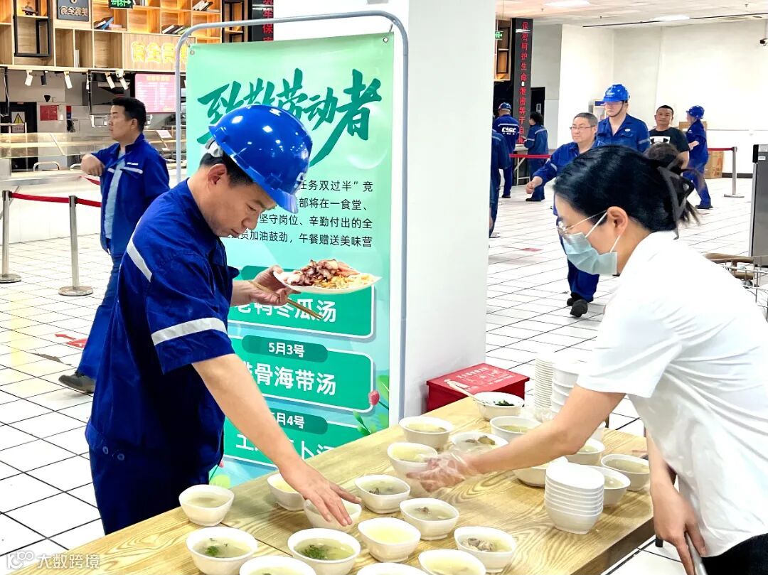 12:00,公司在一食堂、二食堂为广大坚守岗位、辛勤付出的全体从业人员加油鼓劲,午餐赠送美味营养汤。