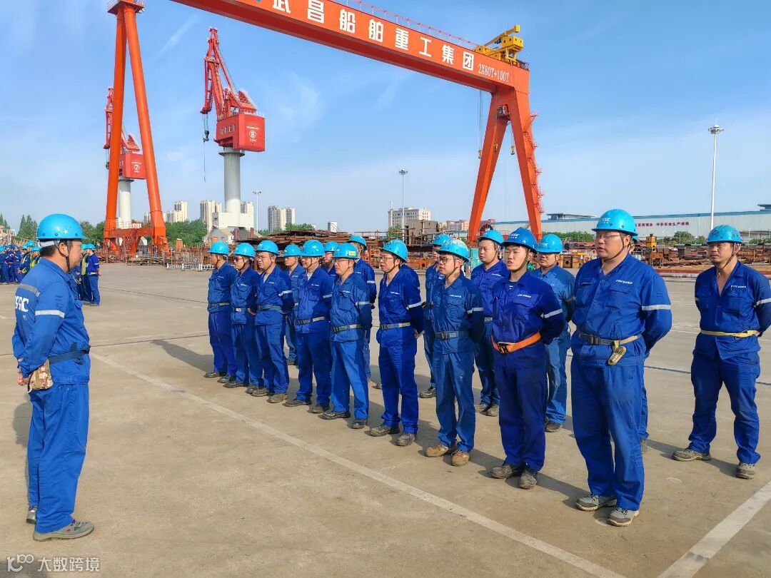 7:00,武昌造船各班组已早早集结。总装部、分段部、特船事业部、机电事业部、计量公司……班前会的号角在各部门同时吹响。安全喊话、任务布置、风险提醒,每一句叮嘱都是对责任的坚守,每一次检查都是对质量的承诺。