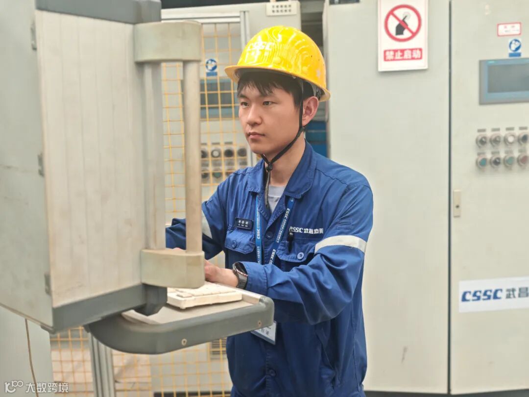 武昌造船青年先锋胡勋敏仔细检查完最后一台设备的运行状态与工作进度,才和中班的同事一起走出车间。
