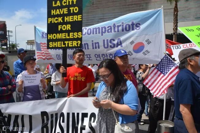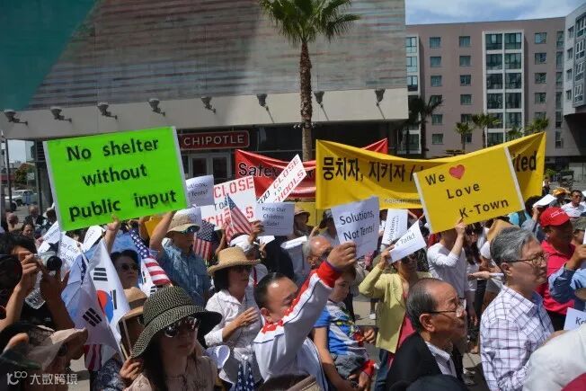 6日近200位民众聚集在韩国城中心的Wilshire大道和Vermont大道边一处广场,举行抗议游行,现场气氛几近失控,在警员维持下才恢复正常。强烈反对的民众高举标语、高喊口号,表达「韩国城不希望游民庇护所」的心声。