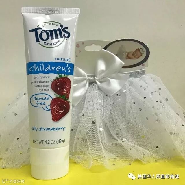 Tom\'s of Maine儿童牙膏。能有效防止蛀牙,钙清洁牙齿,味道来自真正草莓萃取物,不含人工甜味剂、染色剂、起泡剂、防腐剂。不含动物成份,不含转基因产品。