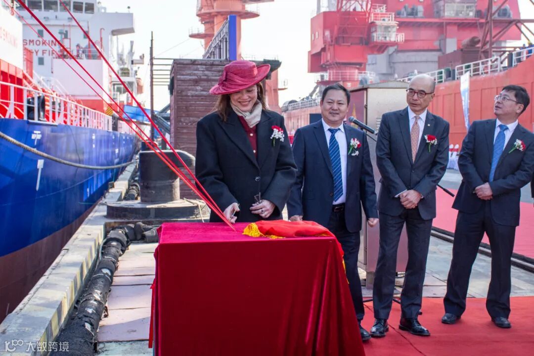 思多而特新加坡销售经理Angela Ng女士,将船舶正式命名为“黄槐”,并祝愿“黄槐”轮一帆风顺,航行平安,在未来的航程中乘风破浪。