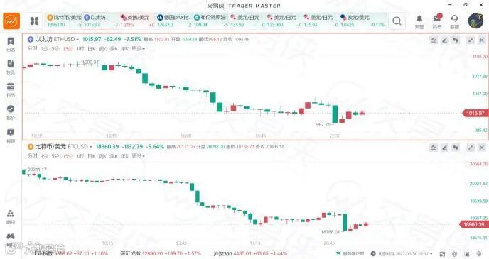 周四,比特币再度大幅跳水,失守19000大关,跌幅一度扩大至6%。以太坊跌破1000美元/枚,为6月19日以来首次。而波动性更大的山寨币表现更糟,雪崩(Avalanche)和多边形(Polygon)暴跌10%左右。