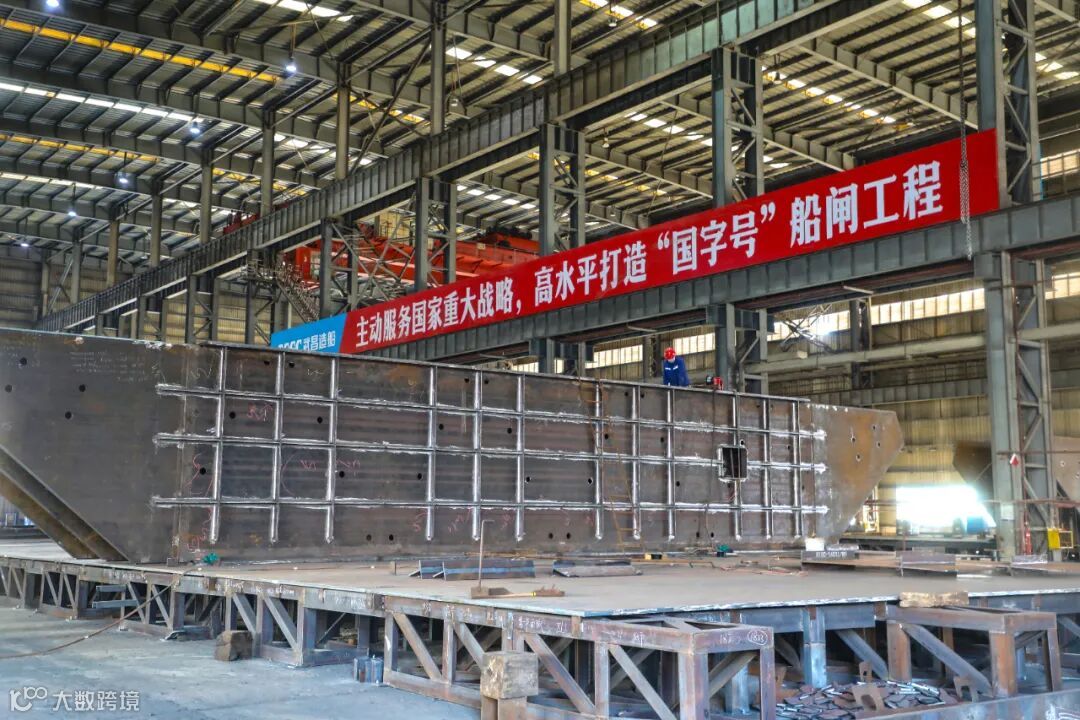 近日,由武昌造船重装公司承建的西部陆海新通道平路运河马道枢纽船闸人字门全面进入总装阶段,达到序时进度要求,顺利通过平陆运河集团现场巡检。