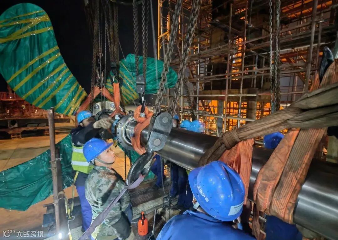 艉管与艉轴作为船舶推进系统的重要部件,其安装精度直接关系到船舶航行的安全性与稳定性。对此,施工团队予以高度重视,组织技术人员深入研读图纸、吃透工艺细节,开展施工前技术交底,同时,对照物资准备清单,做足生产准备。施工过程中,施工团队为实现艉管精准定位,使用专用对线工装,并在专用测量仪器配合下,对艉管位置进行反复精确调试,高质量完成轴系照光工作。在施工人员紧密协作下,艉轴被平稳、精准送入指定位置,艉轴吊装任务顺利完成。后续,施工团队将继续抢抓艉部轴舵系施工、舱室转序、主干电缆拉敷等项目,为实现船舶按期下水创造有利条件。
