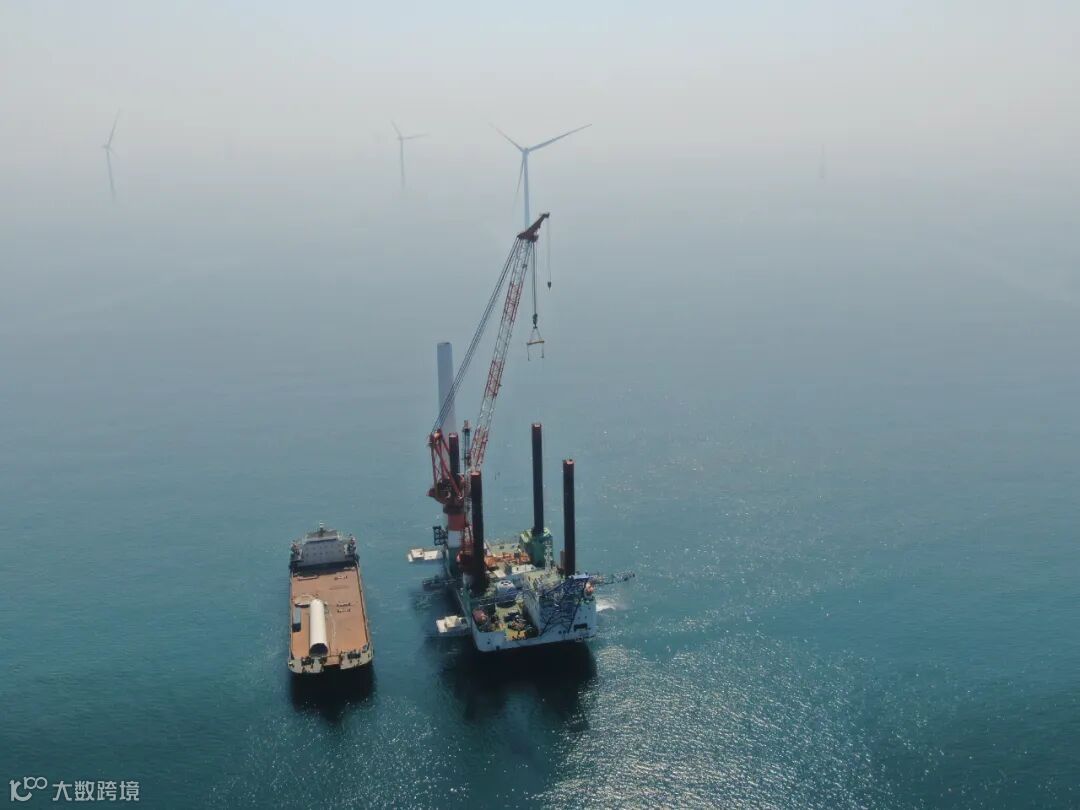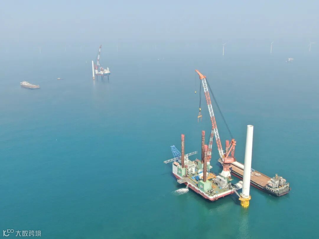 4月初,由招商局太平湾与三峡能源联合打造的庄河海上风电场址V项目施工现场,两艘自升式风电安装船正在进行风电机组安装作业,项目施工已进入收尾阶段,在完成所有风电机组安装后,项目将实现全容量投产。
