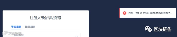 “说时迟那时快”,没想到“火币””第一个出来响应,根据火币的注册页面虽说还有中国大陆的选项,但是用“手机号”和“邮箱注册”时,出现提示“