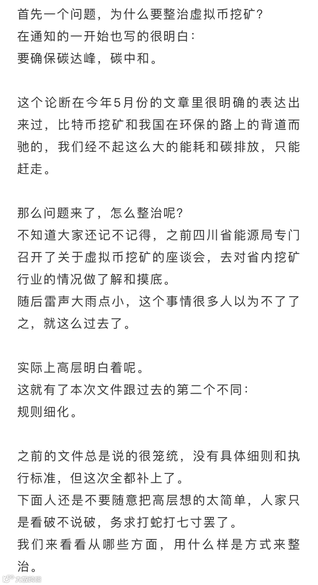 与之前的通知不同,本次是由发改委牵头、联合其他十部委联合发布的,要知道之前发改委将比特币挖矿列入淘汰产能的时候,只是发改委一家发布,这次是11家,你能明白这代表着什么态度吗?