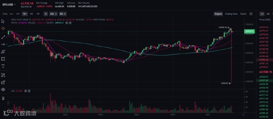 目前,该平台上比特币交易价格已恢复至约6.3万美元,24小时内变动幅度约3%。