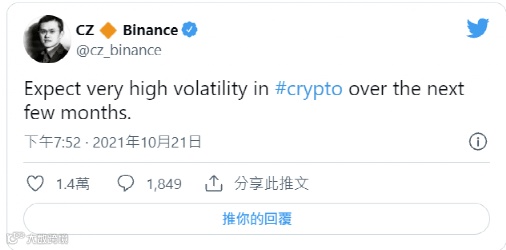 币安创办人赵长鹏前一天才发推文,“表示未来几个月,加密货币的波动性非常高”。事后立即有网友在下方留言称,“你是说币安美国吗?”