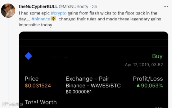 实际上,由于缺乏监管,交易平台对于规则制定有着决定性权力。一些网友表示,平台可以随意修改交易规则,过去在一些极端情况下的买入交易都被判定无效。一网友就展示了在2019年其以极低价格买入比特币,但没有兑现的情况。