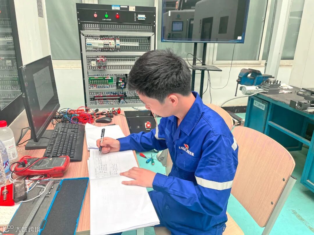 比赛过程,武昌造船重装公司2名选手在顺利通过理论知识考核的基础上,使用各种工量器具和检测仪器,顺利完成了电气元件选型与安装、电气线路连接、数控机床故障诊断与排除以及系统参数调整、机床电气调试等4项机床电气安装调试与故障排除任务,出色完成了刀架部件故障分析拆装与调整、十字滑台拆装与调整、十字滑台几何精度检测与调整、试切件的编程与传输加工等4项机械部件的装调与维护任务,展现了良好的机床装调维修技能水平和职业素养。
