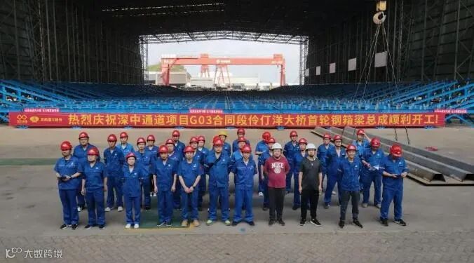 中国船舶武昌造船重工公司承建了深中通道桥梁工程G03合同段,包括深中大桥的一半及东泄洪区非通航孔桥,钢箱梁总重约9.77万吨,合同额13.745亿元。在施工策划阶段,重工公司按照“集中化、车间化”的组织原则,采用一桥两地制造模式,特别是将钢箱梁拼装场地布置在比邻桥位的中山基地,配置了设施完善的拼装车间、涂装车间、存梁场地和码头设施,为确保项目节点打下了坚实基础。