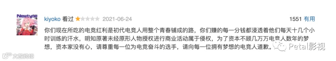 小编先去看了故事梗概:女主凭自身实力加入职业电竞战队,在男主的帮助下不断学习成长,两人终于打败其他卫冕队伍,给中国电竞拿下首个冠军🏆。这些看着都挺正能量的吧,但是小编去看了电竞爱好者的评论,发现大家提到的最多的词就是——抄袭。