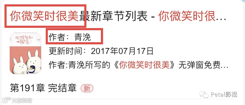 这部剧改编自同名小说《你微笑时很美》,小说本身就是抄袭、融梗被万家唾弃,为什么这样说呢?