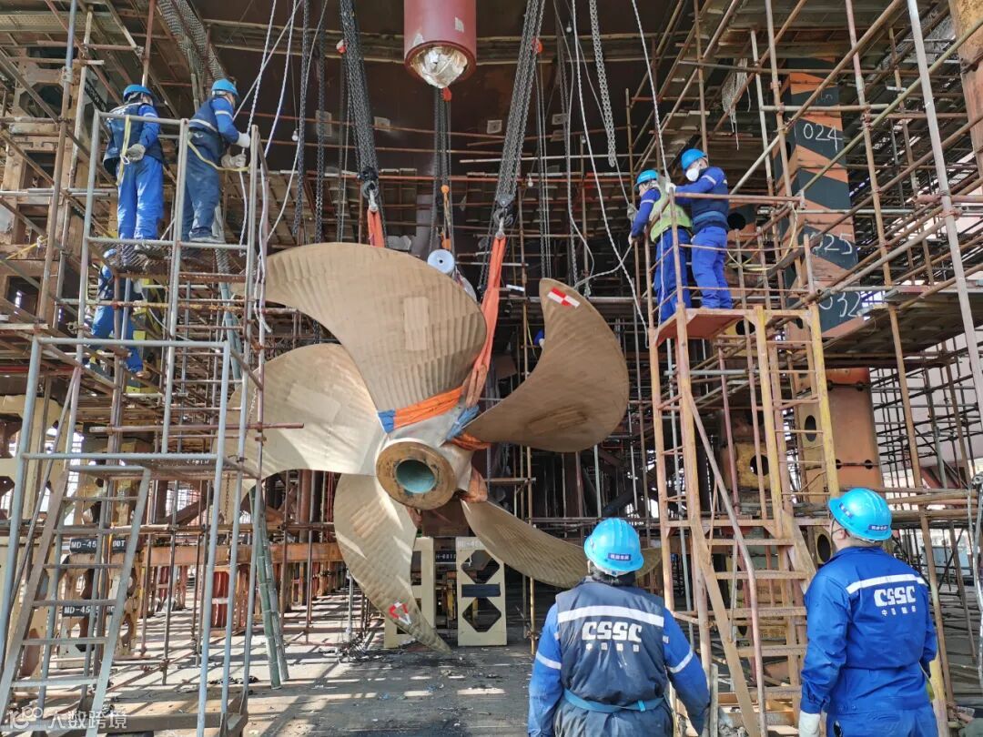 该船上船台以来,武昌造船借鉴前期型船建造经验,加强生产策划,优化生产组织,高效推进分段和总组连续搭载。在分段转序后,项目组及时组织各车间抢抓总组施工任务;克服2号船台吊车资源紧张、低温雨雪天气等困难,组织施工人员分班连续奋战,完成全船搭载任务,相较于12号船缩短0.7小时。