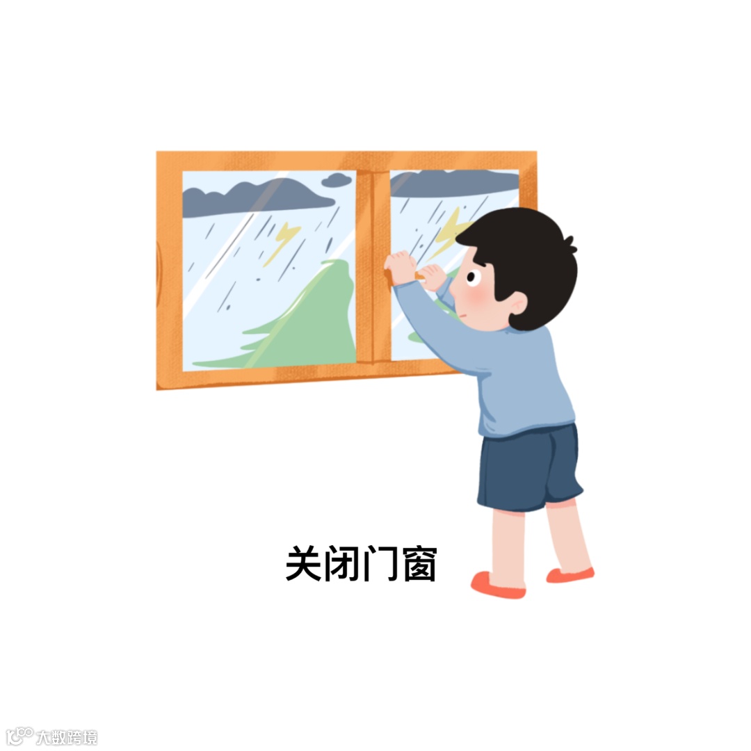 尽快返回室内,关好门窗并远离窗口。必要时在玻璃窗上贴“米”字形胶带,防止玻璃破碎。