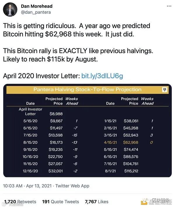 在2020年4月的投资者信件中,我们预计比特币在本周可能会达到62968美元。比特币价格真的到了。