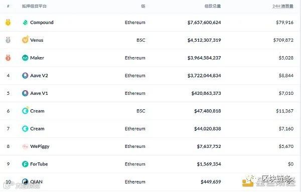 排名前十的借贷平台 排名来源:Debank