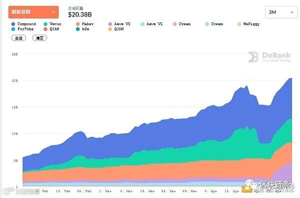 DeFi借贷平台借款总量 数据来源:Debank