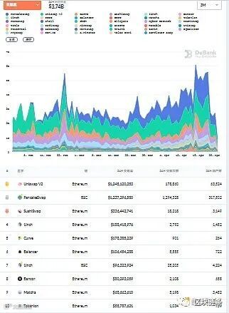 过去24小时DEX交易量及排名前十DEX 数据来源:Debank