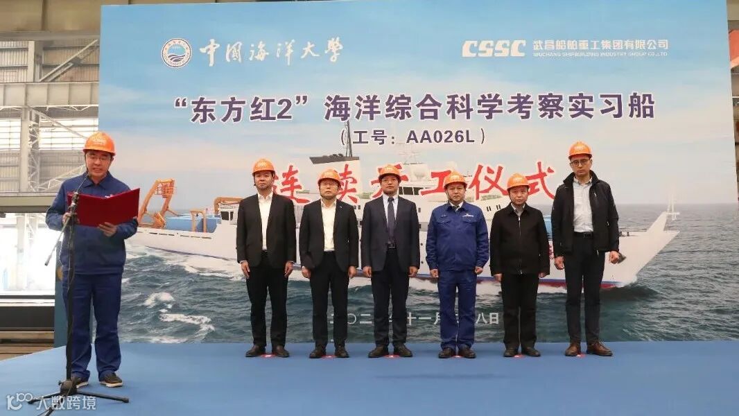 11月28日上午,“东方红2”海洋综合科考实习船大修改造连续开工仪式在武昌造船举行。中国海洋大学副校长魏志强、中国船舶集团有限公司第七〇八研究所副所长朱建璋、中国船级社武汉分社副总经理杜海根、上海佳船工程监理发展有限公司总经理邱亮亮、中国船舶集团有限公司第七一一研究所副所长邱爱华、武昌造船党委委员、副总经理田军等出席仪式。