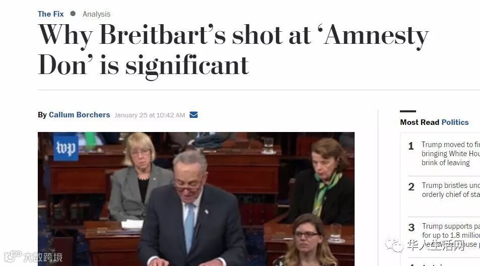 在民主党人中,边境墙可能是一个有争议的问题。上周,参议院少数党领袖、纽约州参议员舒默在谈判给联邦政府临时拨款的法案时,曾告诉特朗普,他同意做一笔交易:民主党批准给边境墙拨款,以换取白宫继续保护“梦想者”不被遣返。但是,特朗普拒绝了他的提议。舒默随后也收回了它。