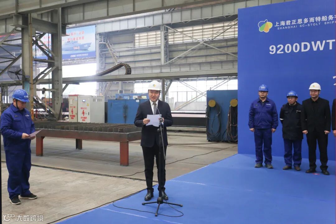 上海君正思多而特船务有限公司总经理张华、副总经理郑翼杰及现场监造团队、中国船级社武汉分社、武昌造船等相关单位负责人参加开工仪式。
