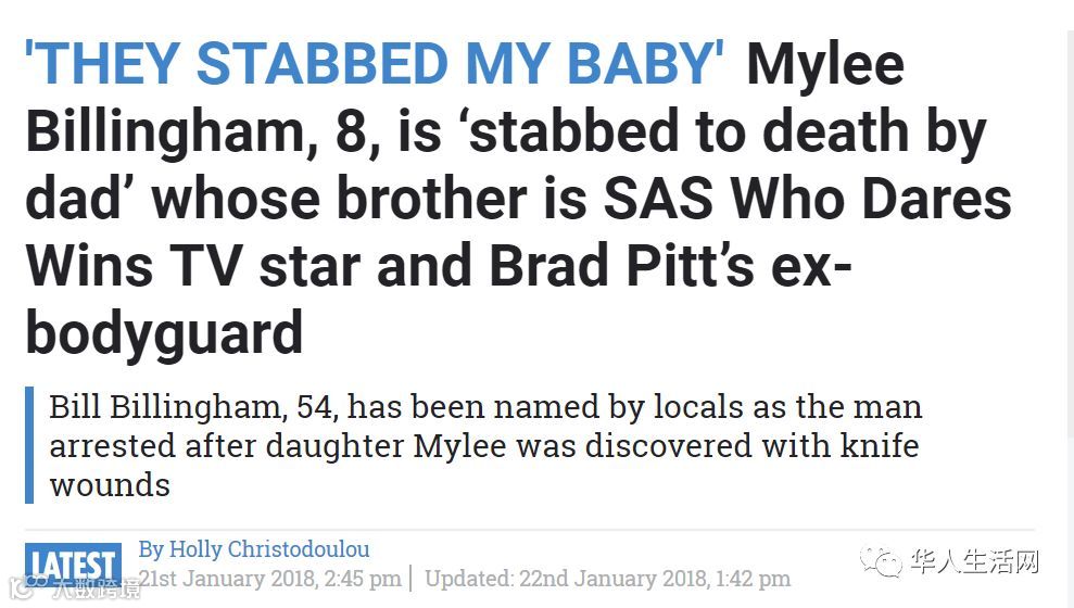 据《太阳报》报道,8岁的米莉·比林厄姆(Mylee Billingham)在上周六被父亲比尔·比林厄姆(Bill Billingham)拍了人生最后一张照片,并发布在Facebook上,而就在此后不到1个小时的时间里,她就被父亲刺死了。