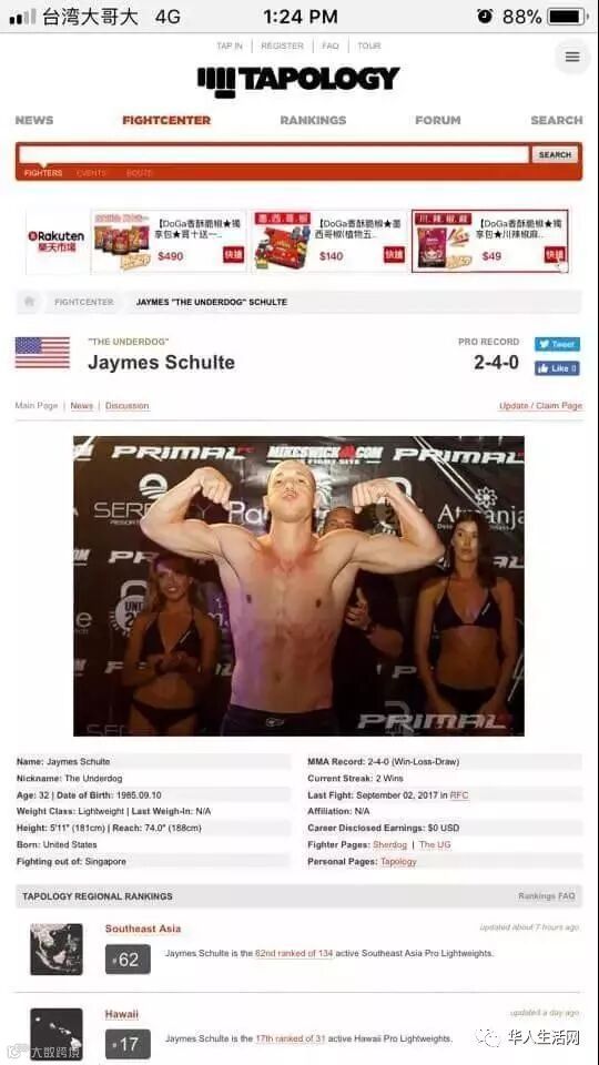 他参加过6场职业比赛,战绩2胜4败,水平中游,并无特别过人之处。因为