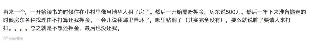 “再来一个,一开始读书的时候住在小村里像当地华人租了房子。然后一开始需呀押金,房东说500刀。