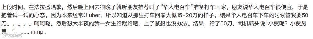 然后想大半夜的我一女生给就给吧,上了贼船也没办法。结果,给了50刀,司机转头说“小费呢?小费另算!”。.......mmp。”