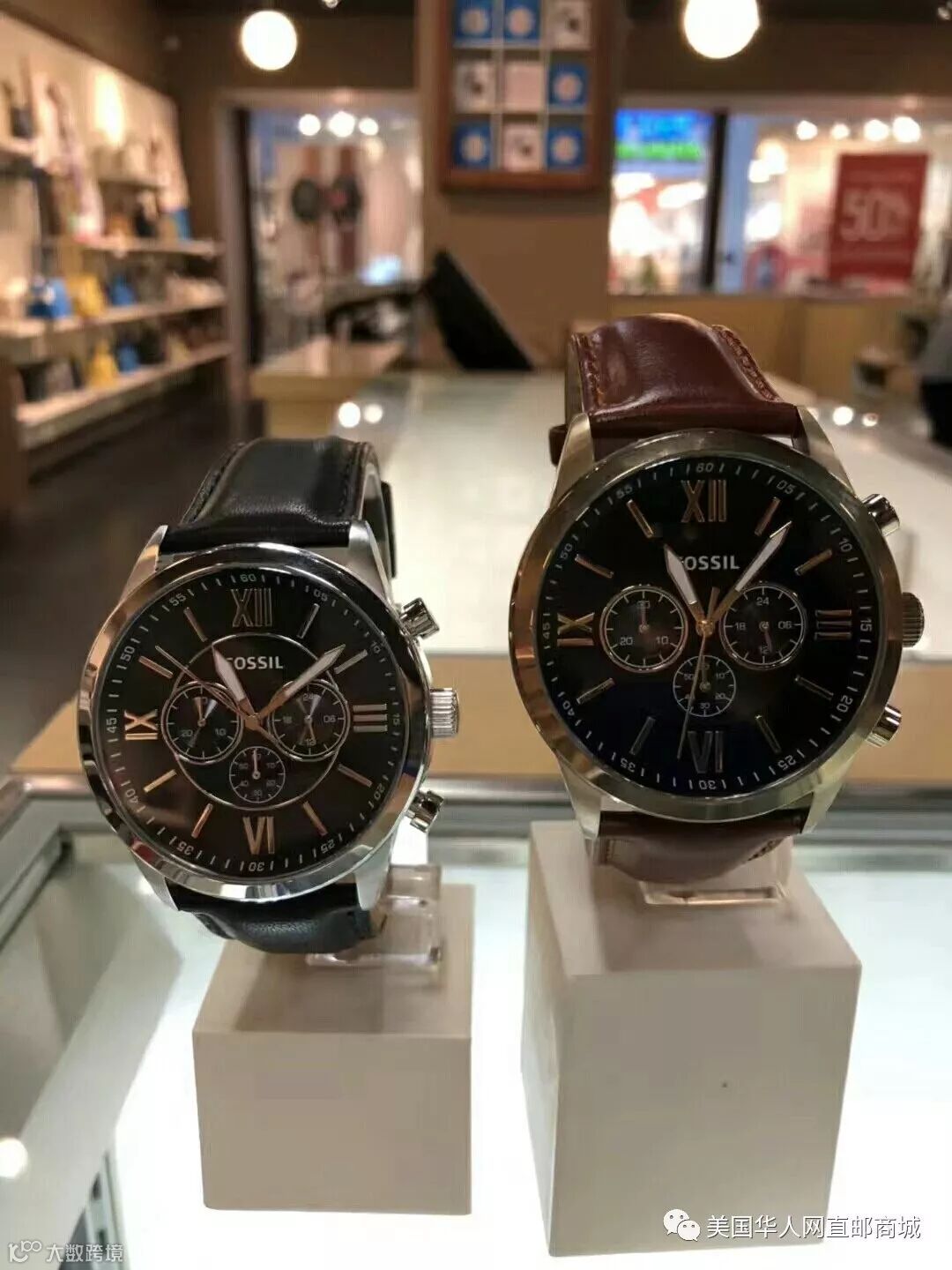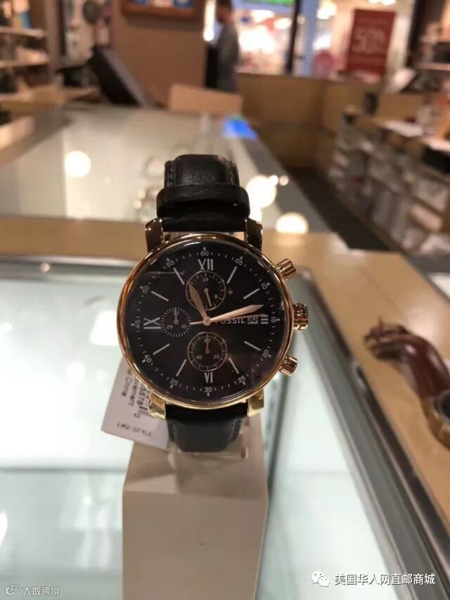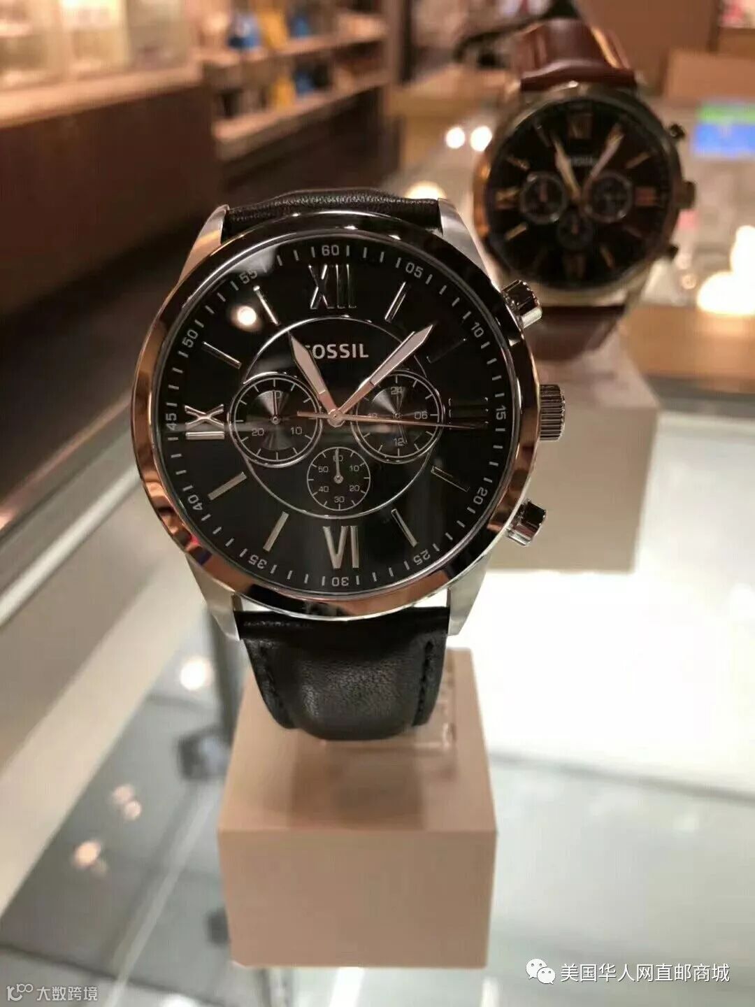 Fossil黑色&棕色表带男士腕表