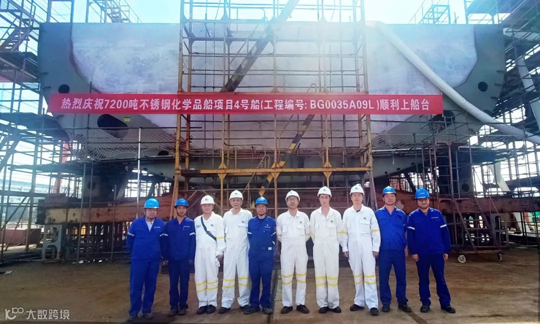 5月25日,由武昌造船建造的7200DWT化学品船4号船顺利完成上船台节点,标志着该船正式进入船台总组合拢阶段。