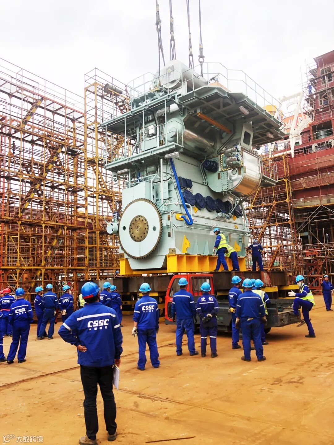 5月23日,由中国船舶集团武昌造船承建的1100TEU集装箱船1号船主机(整机发运235吨),在双柳厂区二号码头顺利拖船至斜船架,起坡、转运至300吨吊车覆盖区域,经过各部门领导和员工的戮力同心,1100TEU集装箱船1号船主机于当天下午17:38分安全转运至48米跨主机放置区域。