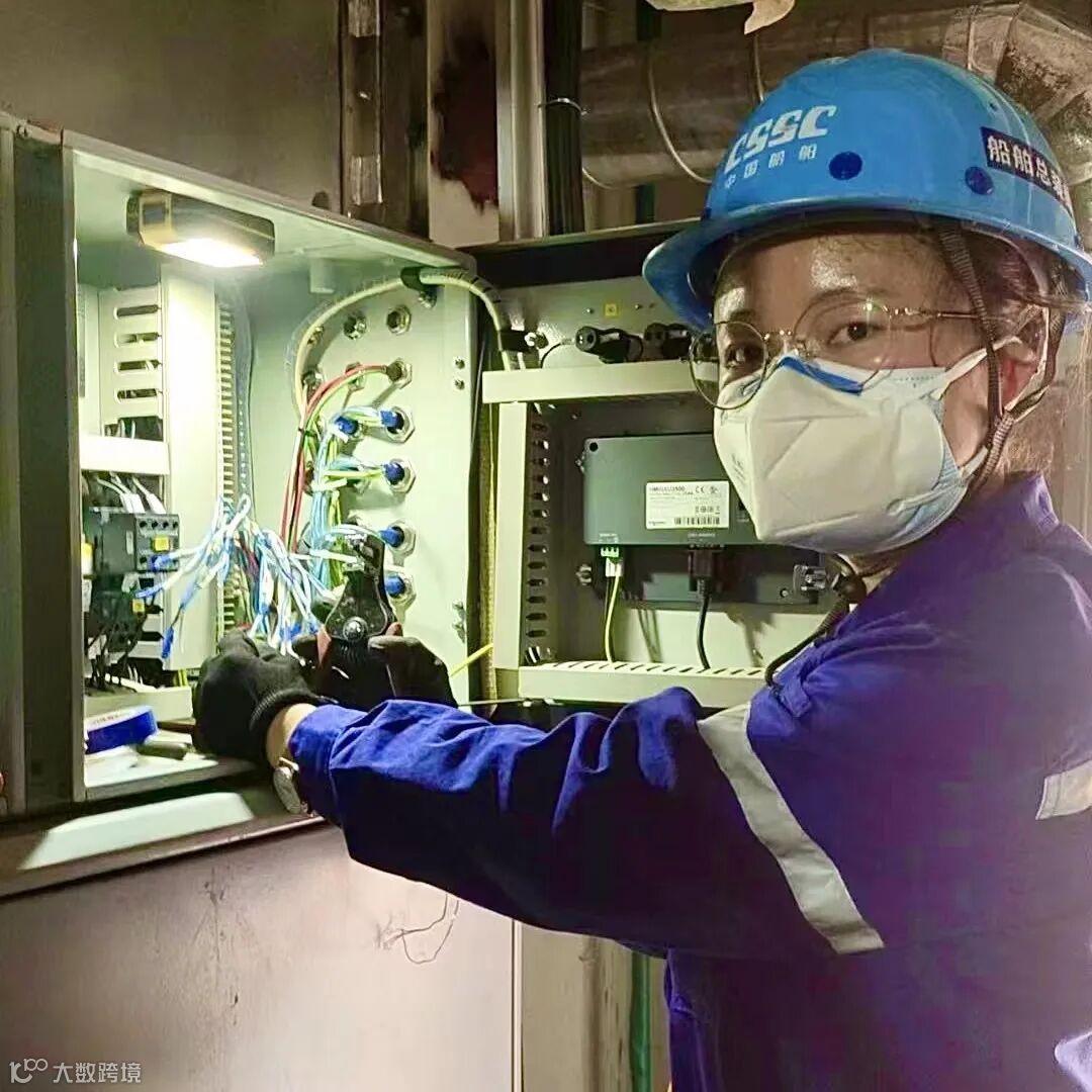 24000-1原油船主机接线时,她勇啃“硬骨头”,深入布满油污的机舱工作,趴在“半空”中的跳板上穿线、分线、剥线、接线,像女汉子一样系安全带爬上桅杆施工,最终圆满完成接线工作。她就是这样——始终坚守工作岗位,不怕辛苦、毫无怨言,用智慧与汗水展示劳动之美。