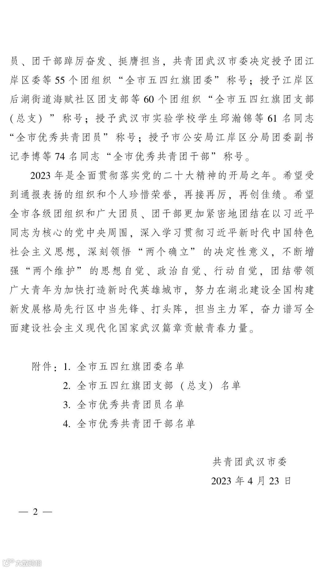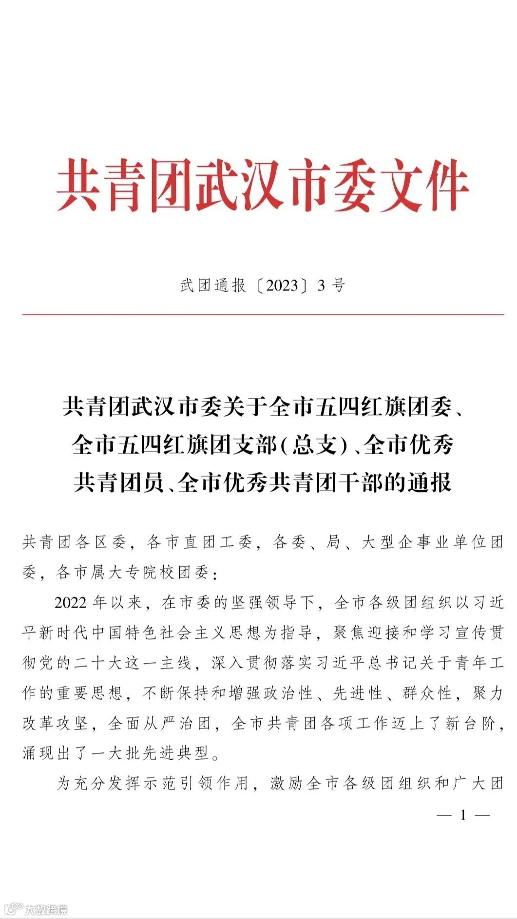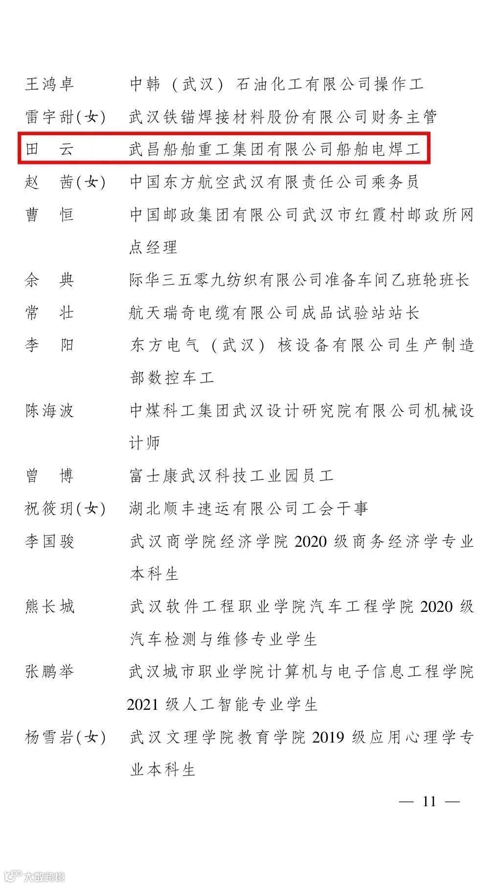 青春正逢盛世,奋斗恰如其时。在五四青年节来临之际,共青团武汉市委印发《共青团武汉市委关于全市五四红旗团委、全市五四红旗团支部(总支)、全市优秀共青团员、全市优秀共青团干部的通报》(武团通报〔2023〕3号),中国船舶集团武昌造船军船公司团委荣获“武汉市五四红旗团委”称号,田云荣获“武汉市优秀共青团员”称号。
