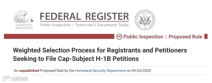 若说费用上涨是 “门槛提升”,那9月24日美国国土安全部发布的H-1B抽签草案,就是对 “中签逻辑” 的彻底重构。这份名为《Weighted Selection Process for Registrants and Petitioners Seeking to File Cap-Subject H-1B Petitions》的草案已开启30天公众意见征集,一旦生效,H-1B抽签将从 “拼运气” 变成 “拼薪资”。