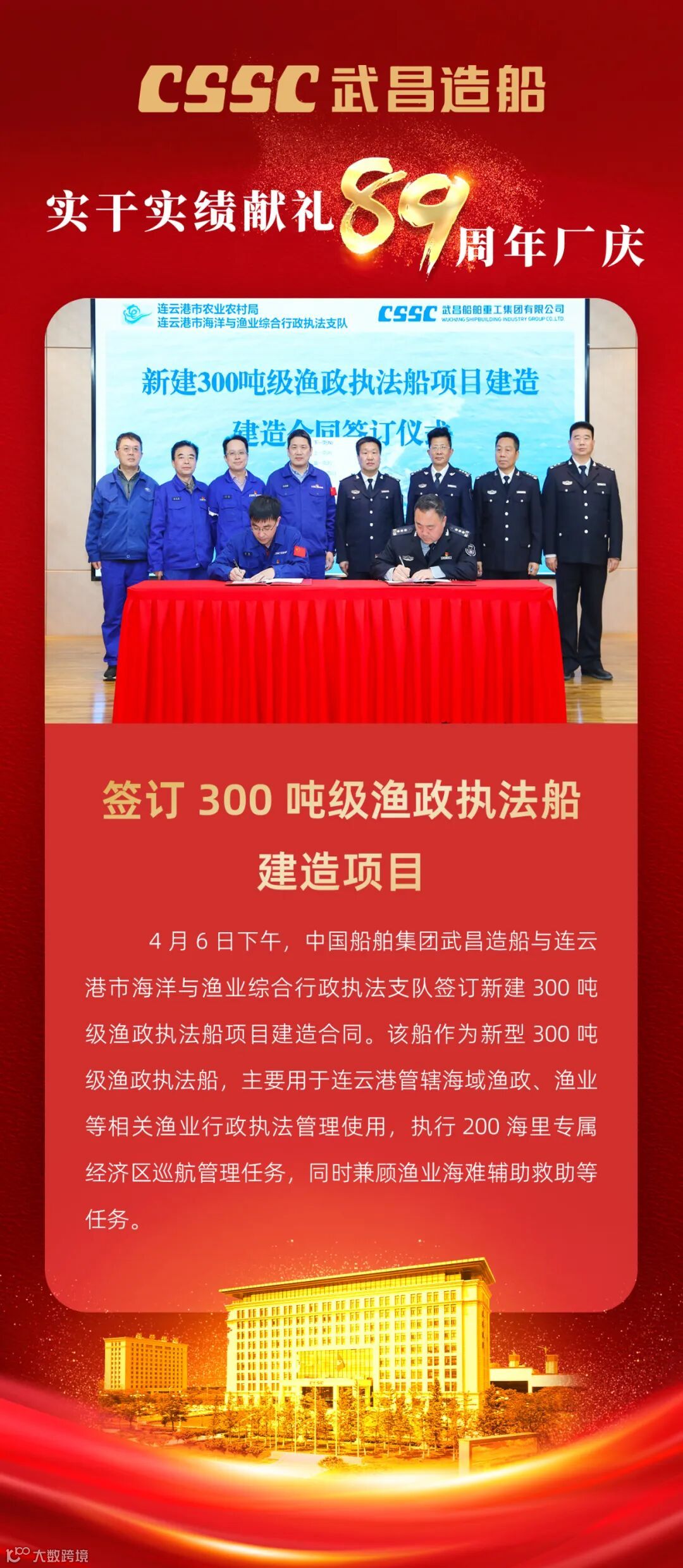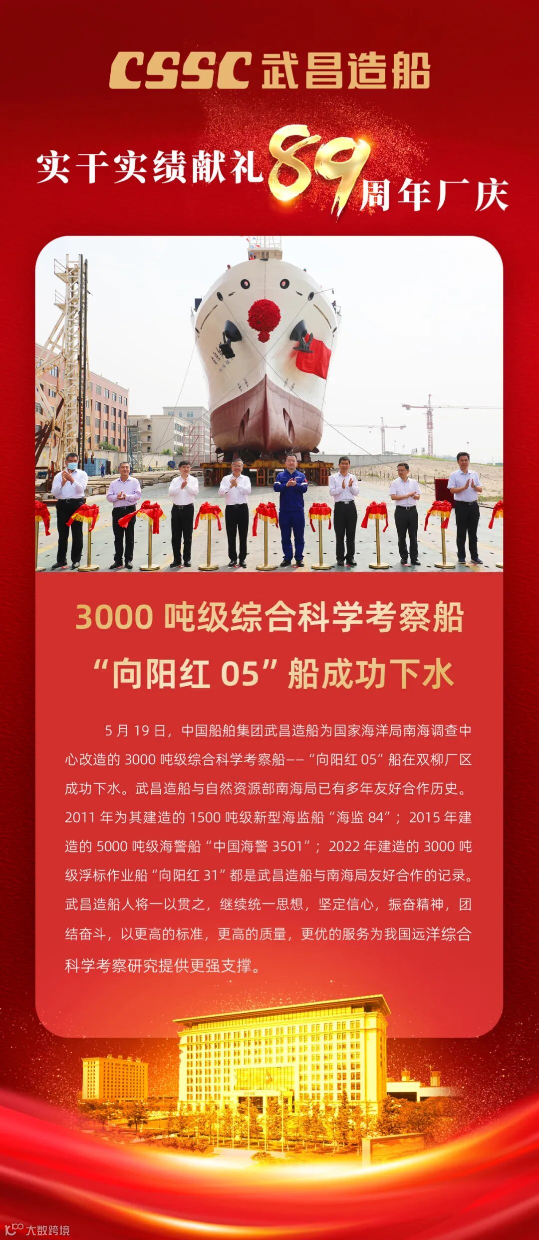 6月6日,由中国船舶集团武昌造船承建的3000吨综合执法船在双柳基地顺利离厂。