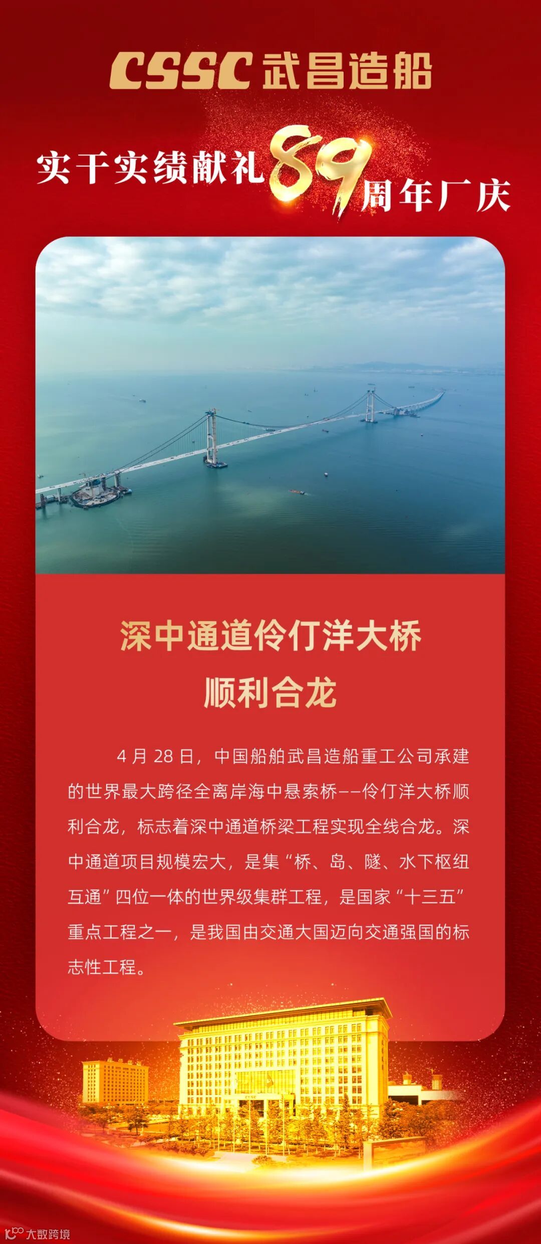预计6月中旬,重工公司将完成伶仃洋大桥后续收尾工作,为深中通道2024年通车奠定坚实基础。重工公司将继续秉承武船建桥铁军精神,发扬特别能吃苦、特别能战斗的优良作风,保工期、保节点、保质量、保安全、保环保,打造珠江口百年品质工程,为大湾区建设再立新功!