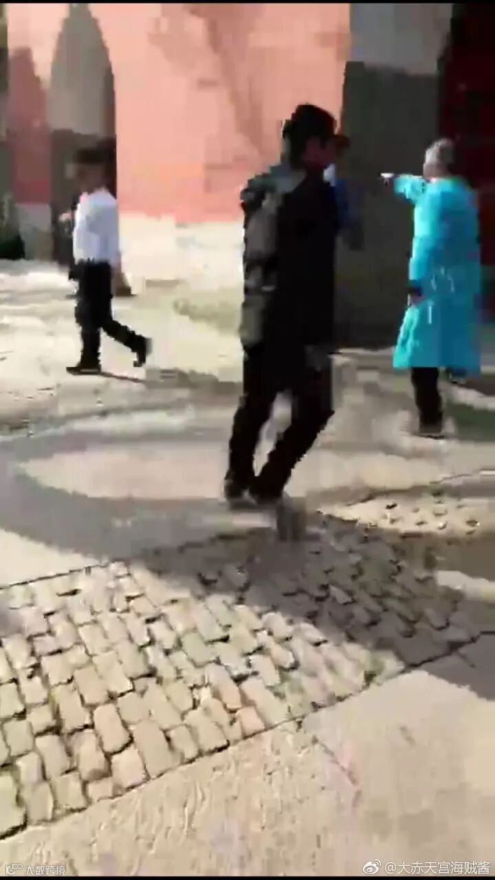 3月11日下午4点左右,当事人张圆圆身穿蓝色大袍在南京明孝陵景区,拍摄视频,嘴里脏话连篇。