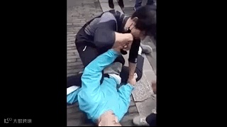 他抡起拳头,对路过劝阻的游客从身后偷袭。
