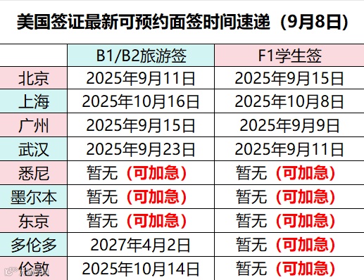面签时间速递(9月8日)
