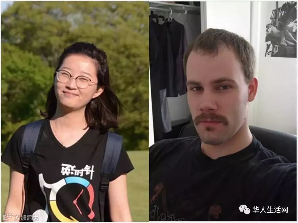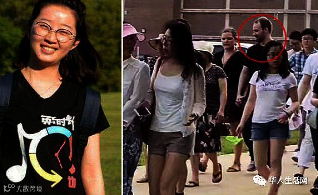 在寻找失踪中国留学生章莹颖(左)的伊大校园游行中,赫然发现嫌疑人克利斯汀森(右)的身影。
