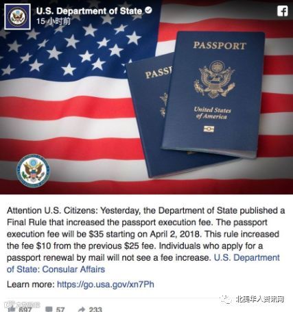本轮价格上涨是由于行政费用(护照验收或“执行”费用)增加所致,美国国务院1月31日表示,将护照行政费用由25美元增至35美元。