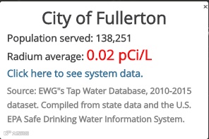 加州镭安全含量是:镭-226为每公升0.05微微升,镭-228为每公升0.019微微升。