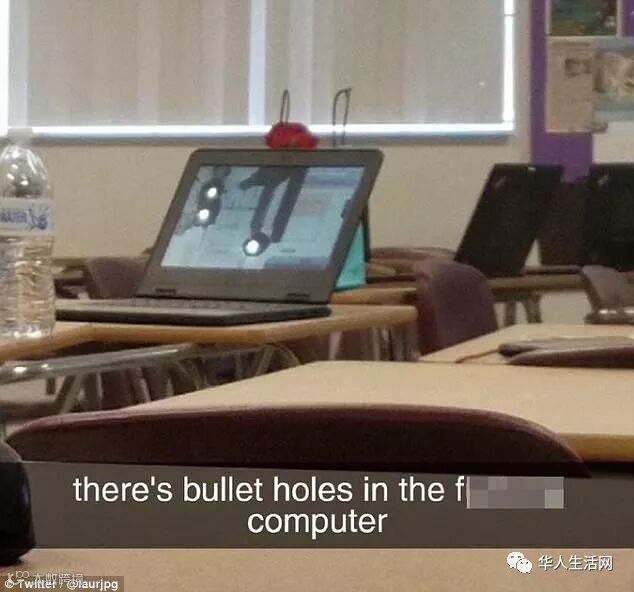 枪手在教室里疯狂扫射,连手提电脑也中了三发。