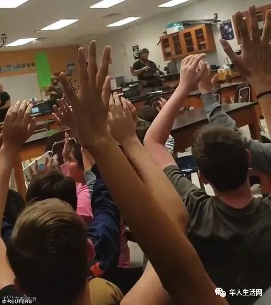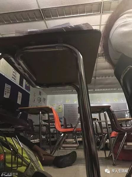 现场手机拍摄的画面显示,吓坏的学生们蜷曲身体,或趴在地板上,或躲在课桌椅后面。随后爆发一连串枪响,震耳欲聋,四处躲藏的学生惊恐尖叫。